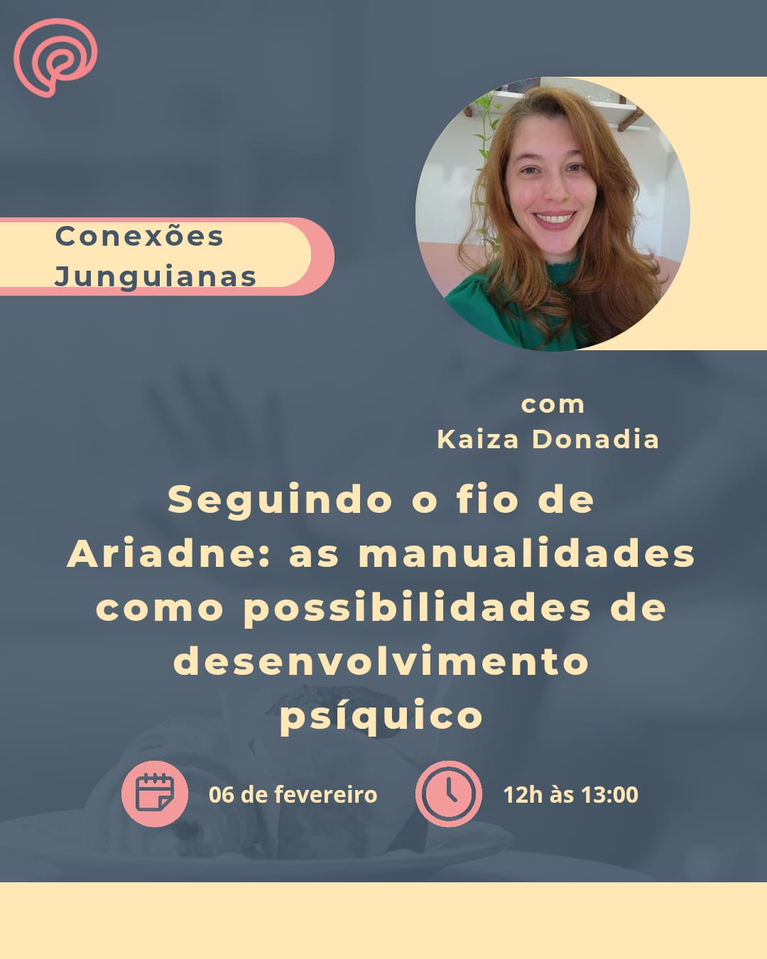 Em Fevereiro, a psicóloga Kaíza Donadia trará o tema “Seguindo o fio de Ariadne: as manualidades como possibilidades de desenvolvimento psíquico” onde vamos refletir sobre as manualidades e seu potencial transformador e suporte terapeutivo